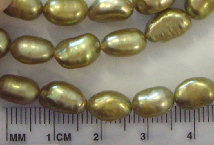 Green freshwater pearls. 42cm strand, approx 25 beads.